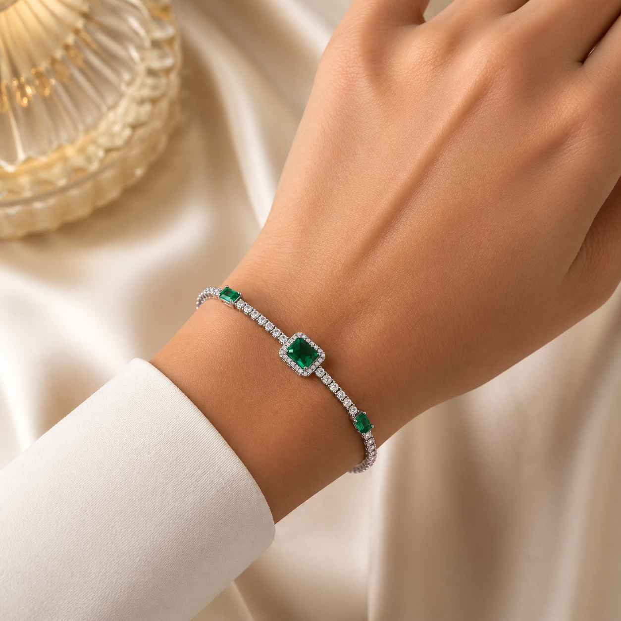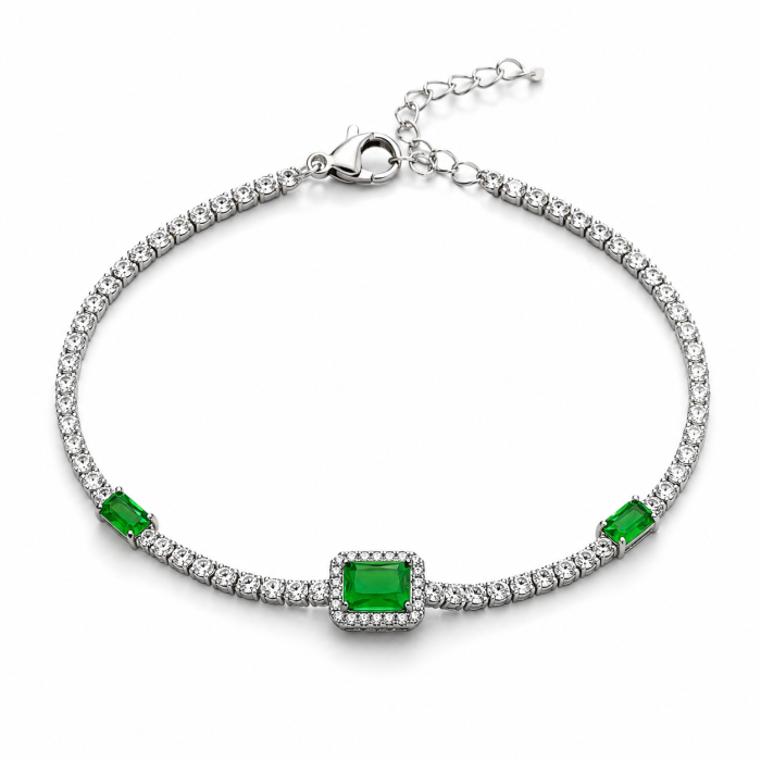Émeraude Grace este o brățară delicată, creată pentru femeia care apreciază rafinamentul subtil. Linia fină de cristale strălucitoare este pusă în valoare de accentele verzi, intense și sofisticate, care adaugă profunzime și caracter fiecărei mișcări.