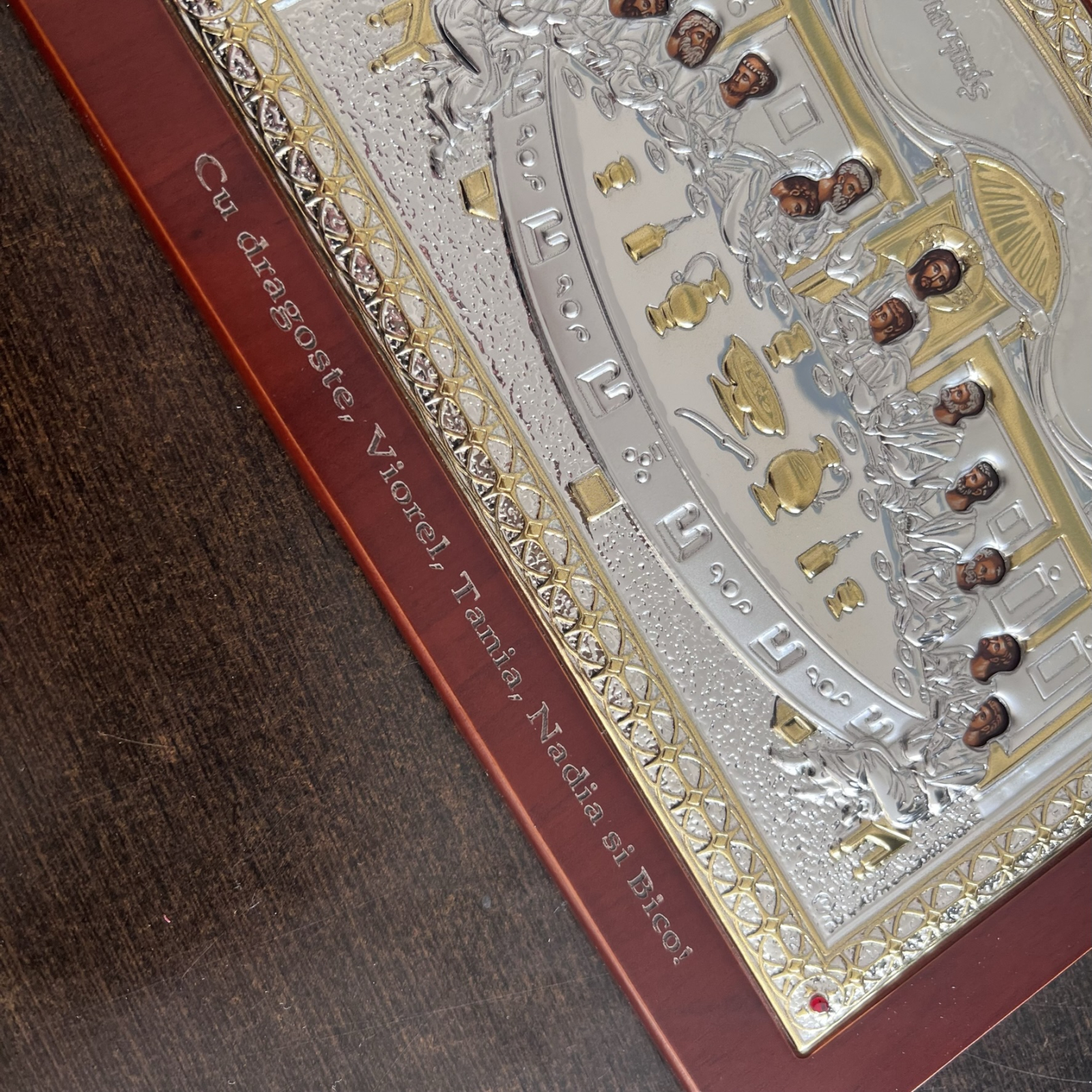 Borealy - Cadouri de Lux vă propune un cadou “altfel” şi plin de semnificaţii. Un cadou universal dar atât de special, ce poate fi oferit oricui, indiferent sex, statut, ocupaţie sau interese. O icoană deosebită, ilustrând celebra scenă “Cina cea de taină”, cea mai populară reprezentare biblică a lui Leonardo da Vinci, într-o abordare modernă, pe un suport din lemn, impecabil finisat, placata cu aur si argint.