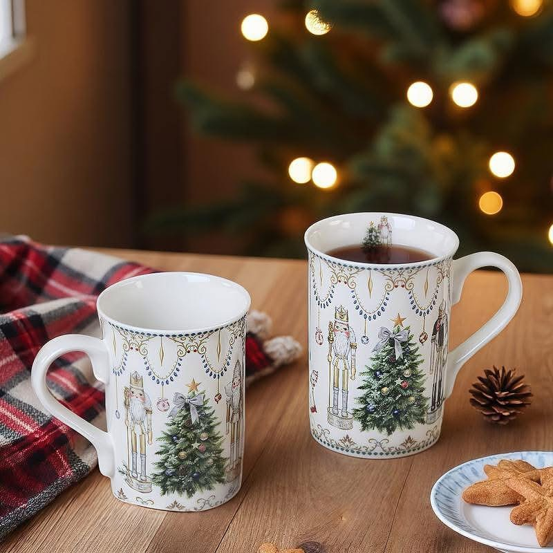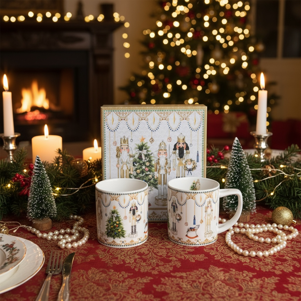 Set 2 Cani si lingurite Royal Nutcracker portelan, 200 ml in cutie cadou – pentru diminețile pline de bucurie și aroma cafelei de sărbătoare.