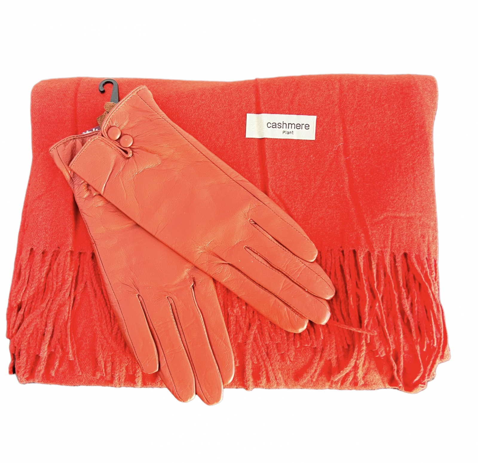 - O pereche de mănuşi din piele naturala- O esarfa din casmir, deosebit de fina si calduroasa 190 X 60 CM