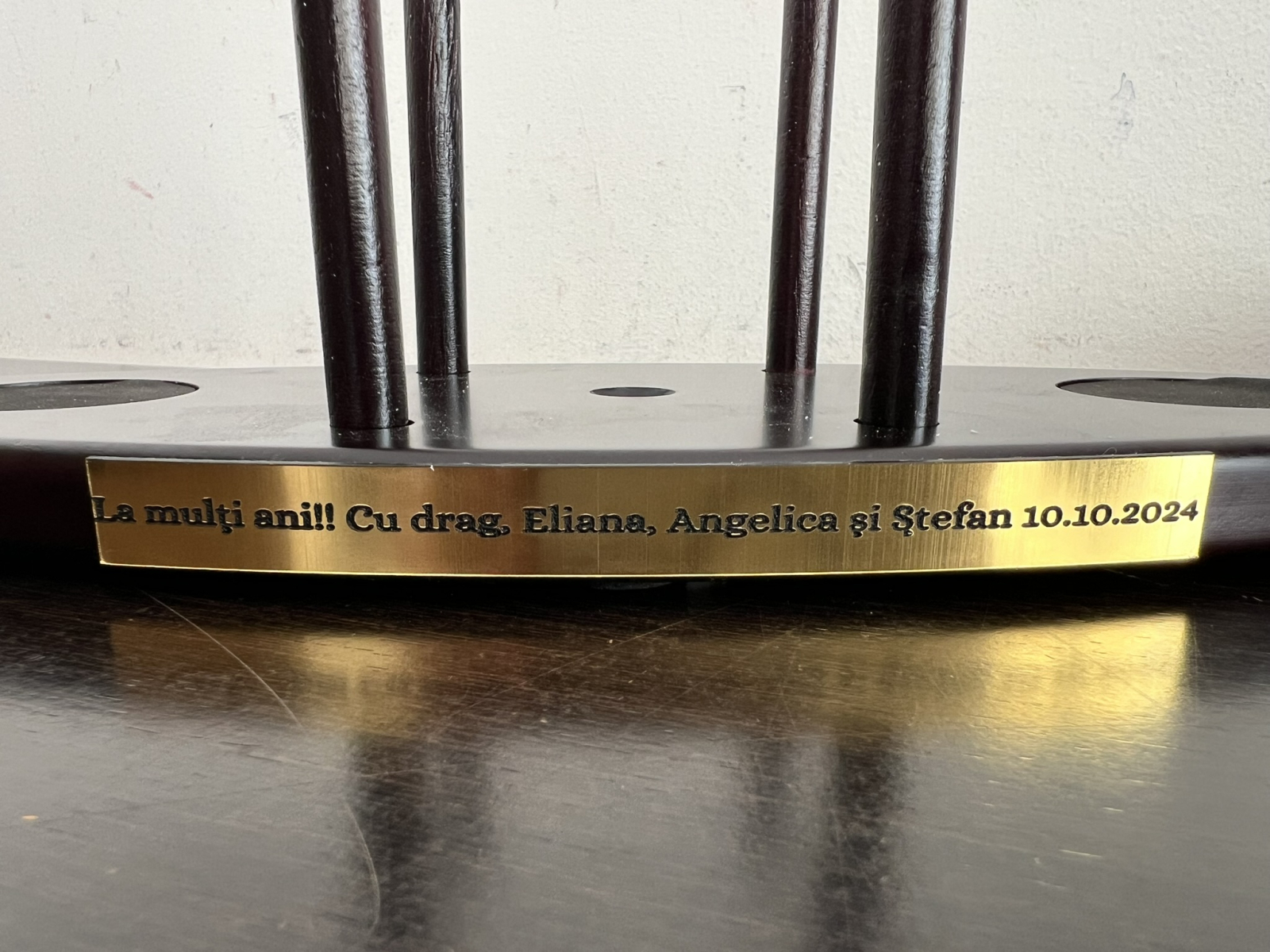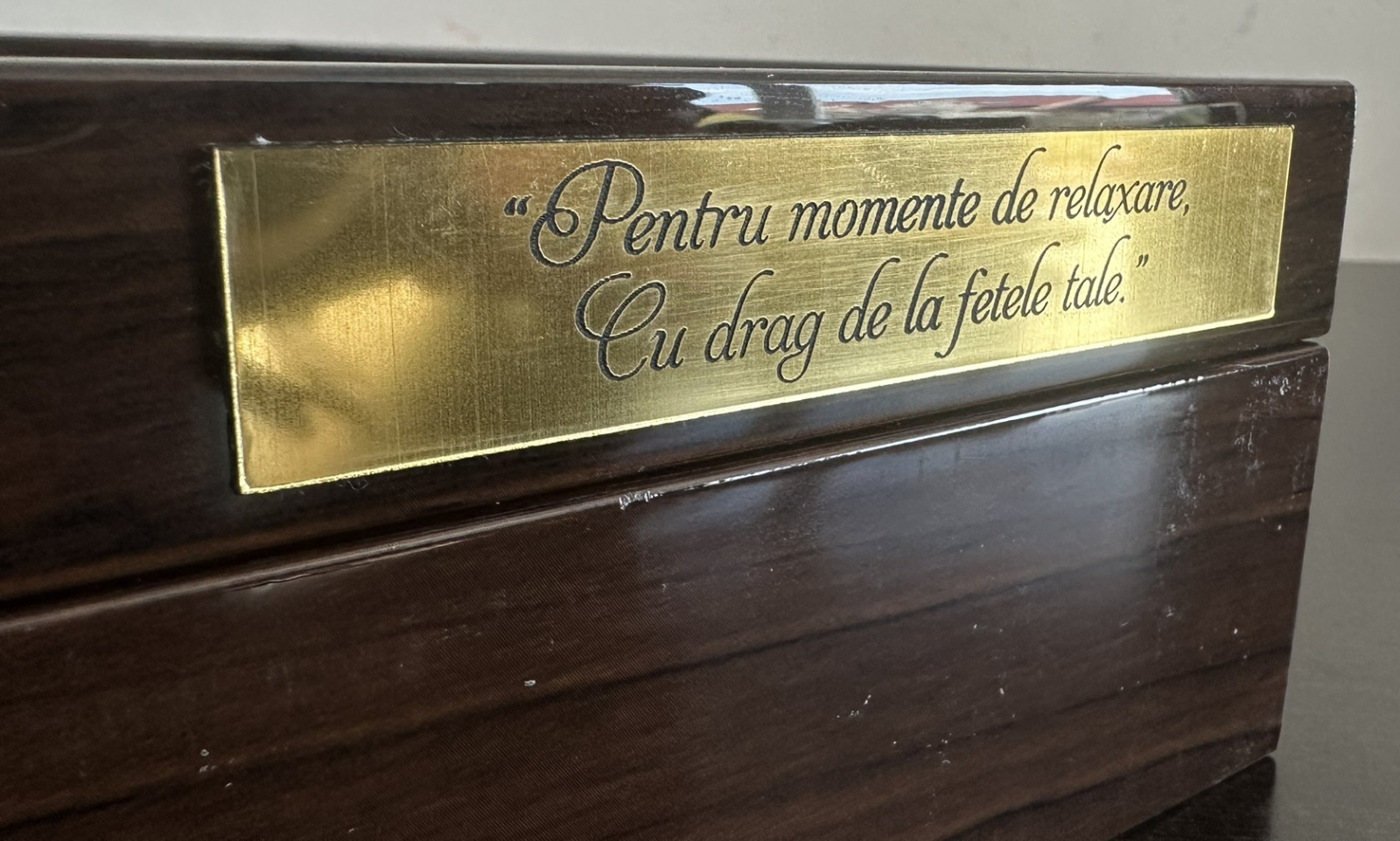 Materiale: Lemn de esenţă nobilă, metal, cristal, aur de 24 carate;