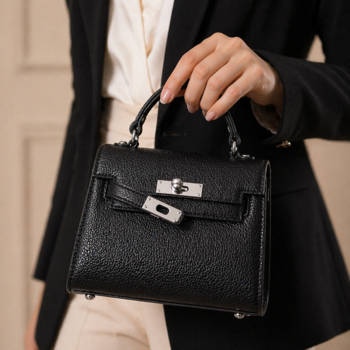 Completează-ți ținuta cu o geantă sofisticată, creată pentru femeia modernă care apreciază eleganța discretă și funcționalitatea. Cu un design inspirat din modelele iconice de lux, această geantă impresionează prin liniile sale curate, textura fină și accesoriile metalice argintii.
