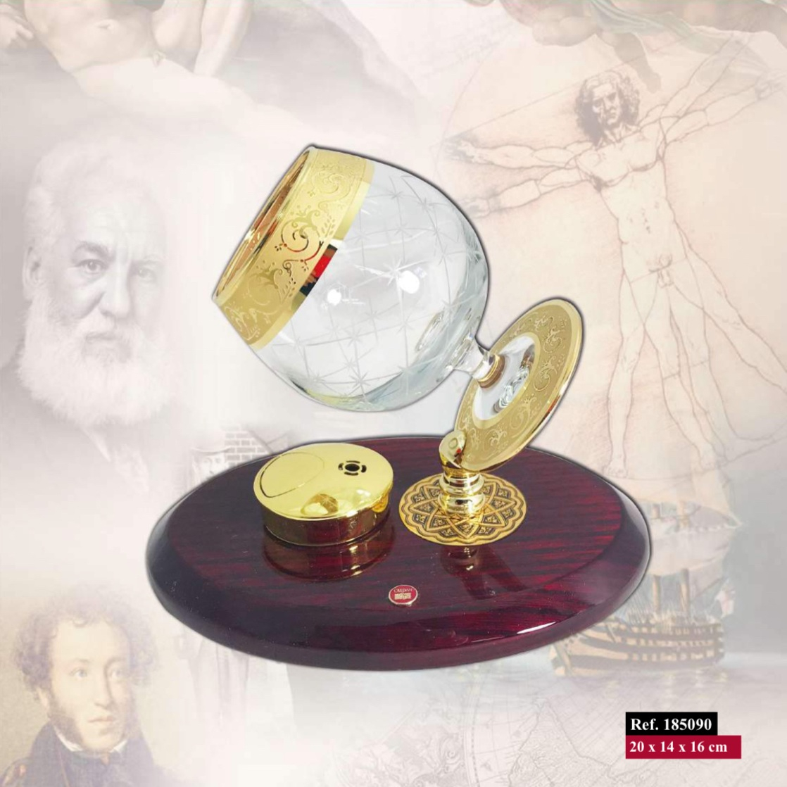 Borealy – Cadouri de lux vă invită să ridicaţi ritualul de servire a cognacului la nivel de artă, graţie încălzitorului de cognac de lux creat de maeştrii Credan şi înobilat cu simbolul luxului absolut, aurul. Suportul oval din lemn în nuanţă de vişiniu închis dispune de un suport ingenios pentru piciorul paharului, care, fixat astfel, îşi oferă cupa spre încălzire deasupra unui dispozitiv electric îmbrăcat în foiţă de aur. Nu în ultimul rând, paharul tulipe este impresionant prin ornamente şi design, în perfect acord cu luxul manufacturii Credan.