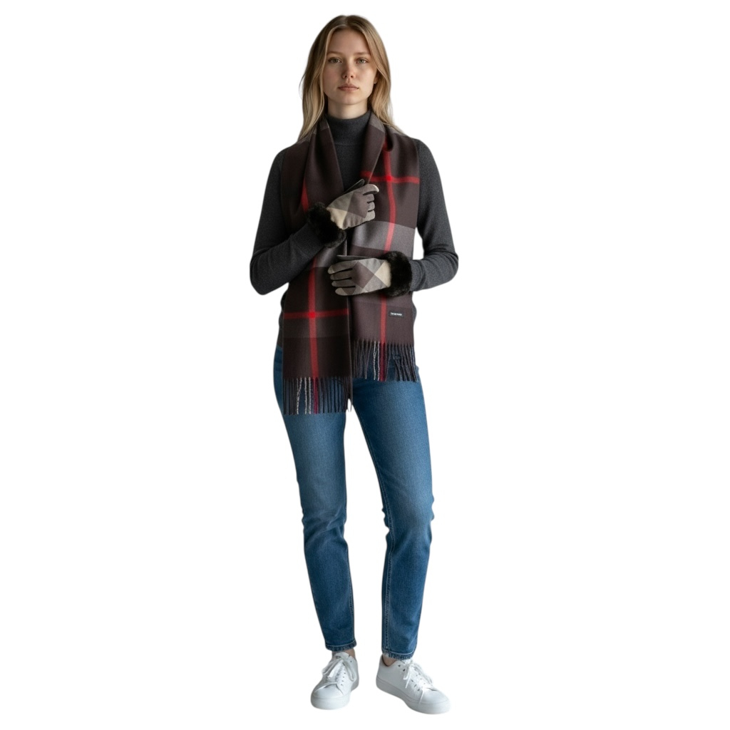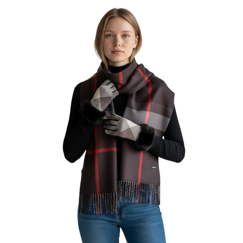 Destinatara acestui cadou va fi foarte încântată de componenţa şi calitatea acestui cadou pentru femei, format dintr-o calduroasa esarfa din casmir si o pereche de manusi textile cu blanita artificiala, produse ce vor deveni indispensabile outfit-urilor de zi cu zi în sezonul rece.