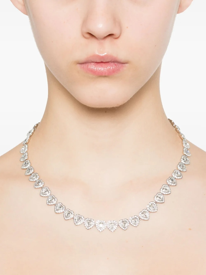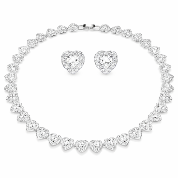 Acest set de bijuterii rafinate este o declarație de iubire spusă fără cuvinte. Compus dintr-un colier spectaculos și cercei asortați, fiecare piesă este decorată cu inimi strălucitoare, simbol al dragostei pure, al eleganței și al feminității absolute.