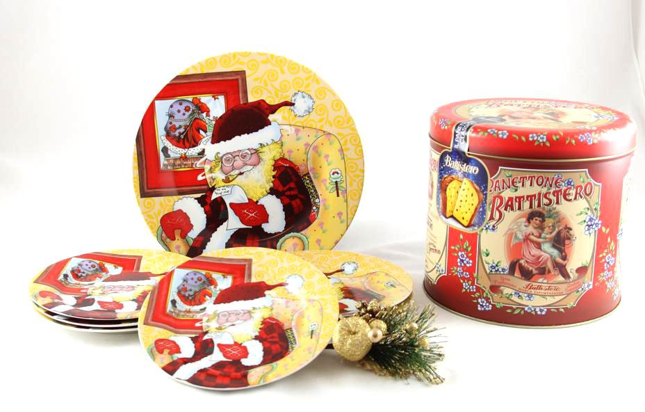 Cadoul de Craciun cuprinde: - un set de platou de tort si 6 farfurii cu Mos Craciun.- Panettone Battistero de lux, in cutie de tabla. Un cadou inspirat pentru a intra in atmosfera de sarbatori